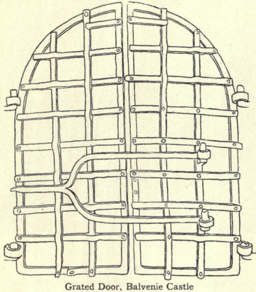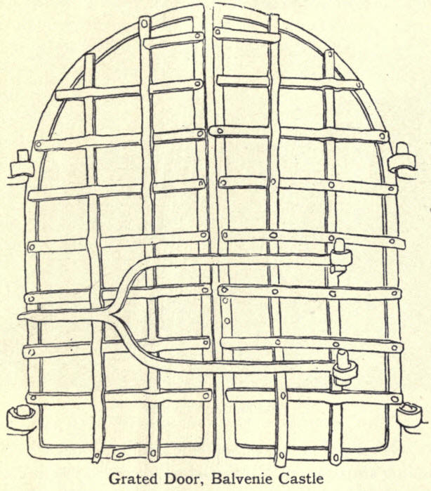 Balvenie next fell to the Gordons, then to the Inneses, and then to the Earls of Fife. The ruin is in excellent preservation. The four walls, still standing, are of great strength, and are in some portions three or four feet thick. A characteristic feature is the grated iron door.