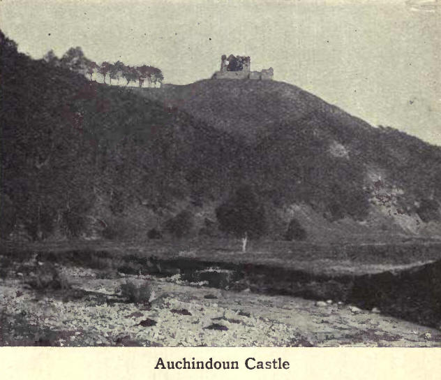 The ruins of the Castle of Auchindoun occupy a commanding situation on Fiddichside. According to tradition it was built in the eleventh century when the Danes were struggling for supremacy in the province of Moray. Since 1535 it has been in the possession of the Gordon family. In an issue of the Quarterly Review of 1816 Sir Walter Scott has told the legend of the burning of Auchindoun by "Willie McIntosh." In the ballad it is related how