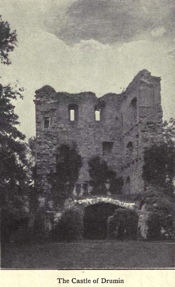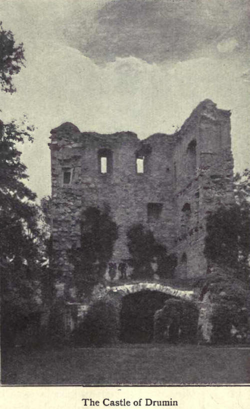 At Drumin, near the junction of the Livet with the Aven, stands the old castle of Drumin, where Argyll encamped previous to the Battle of Glenlivet and where several of the neighbouring clans joined his standard. Its founder is believed to have been Alexander Stewart, Earl of Buchan, "The Wolf of Badenoch." At all events, in 1490 the Castle of Drumin and lands pertaining thereto were disposed by Sir Walter Stewart, grandson of the "Wolf of Badenoch," to Alexander, third Earl of Huntly, and the property has ever since remained in the hands of the Earl's descendants. In later years Drumin became celebrated in the sphere of music, for it was the residence of William Marshall, described by Burns as the first composer of strathspeys of the age.