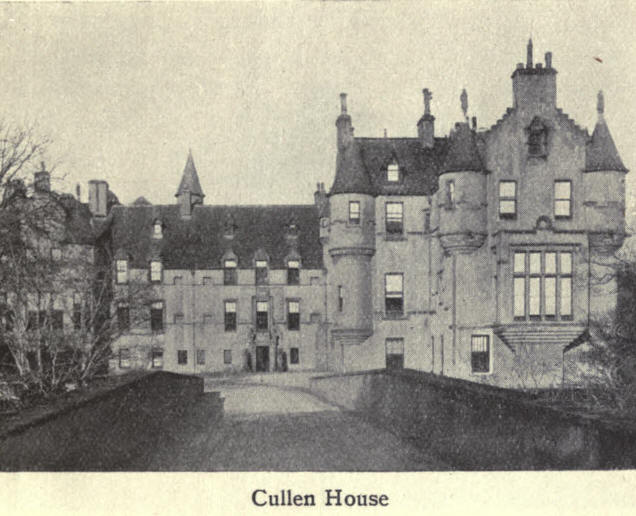 residence of the Seafield family, founded in 1600, stands on a high rock,