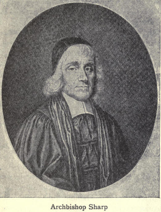 Belonging to a different communion and associated with national, not local, affairs was Archbishop Sharp, son of the sheriff-clerk of the county. He was born in Banff Castle in 1618 and murdered on Magus Muir, near St Andrews, May 3rd, 1679.