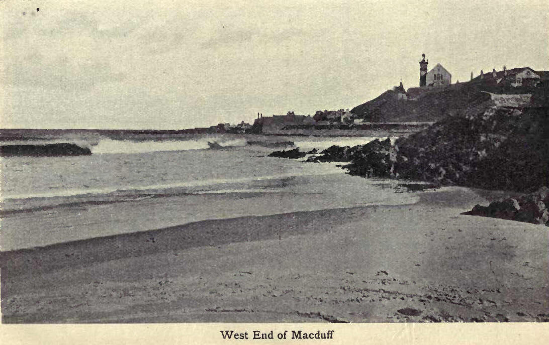 Macduff (3411) formed, of old, part of the Thanage of GIendowachie, which comprised a large area east of the Deveron. Robert the Bruce granted the Thanage and other lands to his sister's husband Hugh, Earl of Ross. Later it was for long in the possession of the Earls of Buchan. As a small fishing village, less than two centuries ago, it was known as Doune or Down—it clusters along the eastern base of the Hill of Doune—and in 1733 it was bought by William Duff of Braco, afterwards first Earl of Fife, a family that has greatly fostered the interests of the town. Through the exertions of the second Earl it was in 1783 erected into a burgh of barony. The harbour has been the mainspring of the town's activities. It was purchased in 1898 by the Town Council from the Duke of Fife and since that time a large amount of money has been spent on its extension and improvement, and it is now one of the largest, safest and most convenient harbours in the Moray Firth. An extensive addition—the Princess Royal Basin. —was opened by the Princess Royal in May, 1921. The burgh possesses a fine town hall. In the vicinity is the Howe of Tarlair with its iron spa, situated amidst impressive rock scenery.