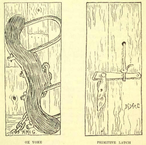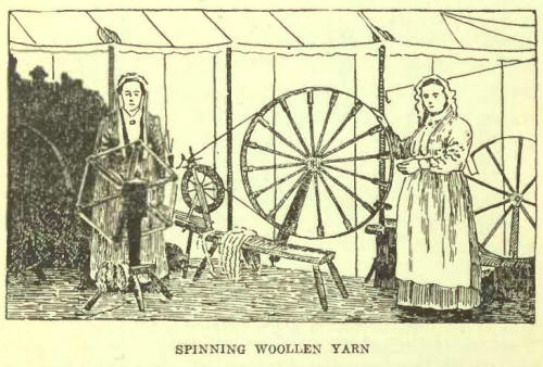 Everything in use about the new dwelling was home-made. The oldest son made a washtub, wheel-barrow, and bedsteads, while the head of the family constructed a wooden harrow. Part of the furniture consisted of a chair with elbow rests and a table, both being of cherry. All of the wood used was cut green out of the