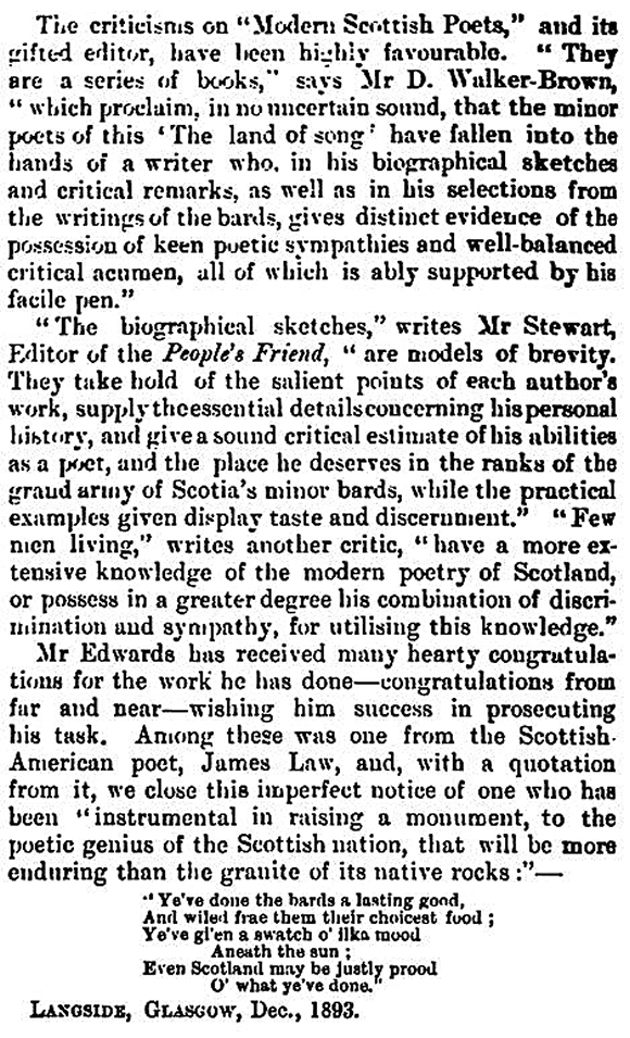 Electric Scotland Note 2: John also decided he'd like to highlight some of the individual poems that he believes are outstanding from this collection and we invite you to send in your own favourite poems from this collection to add to that page,