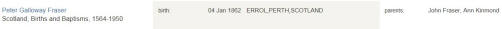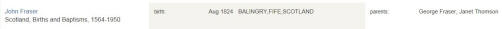 the births and marriage of his parents, John Fraser of Ballingry, Fife,