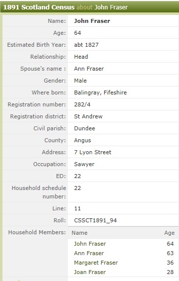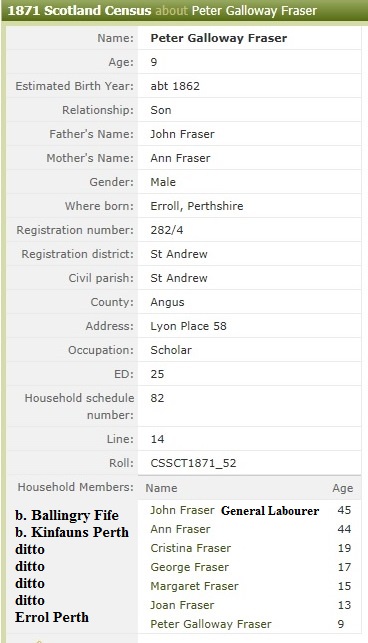 appears that in 1871 Peter Galloway Fraser had at least one brother and