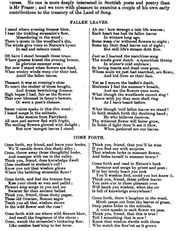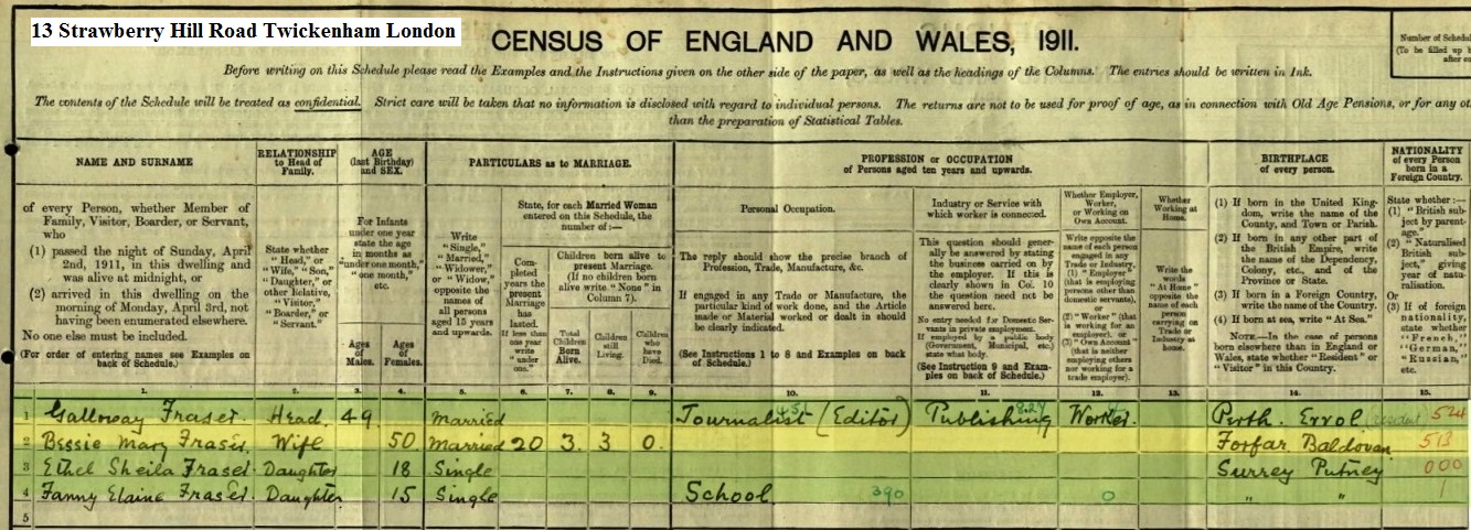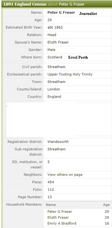 daughter Joan in Liff, and Peter Galloway Fraser (Journalistic Editor),