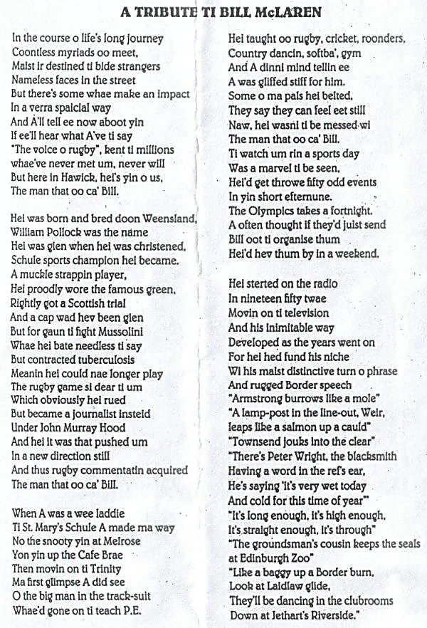 Bill McLaren spent 50 years commentating on rugby union matches for BBC radio and television.