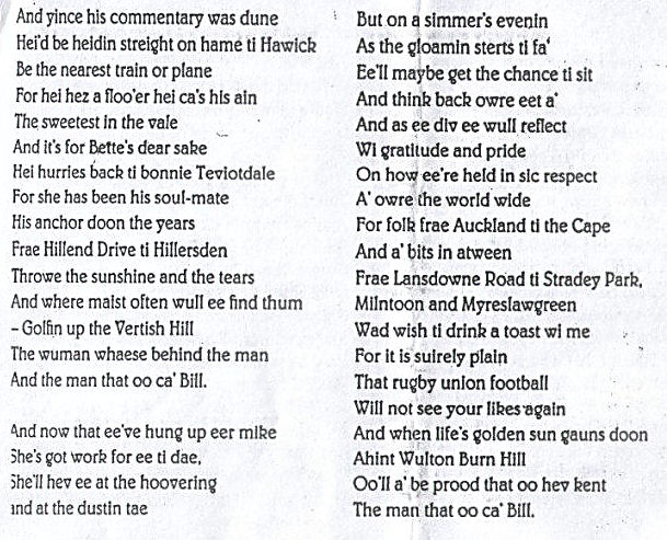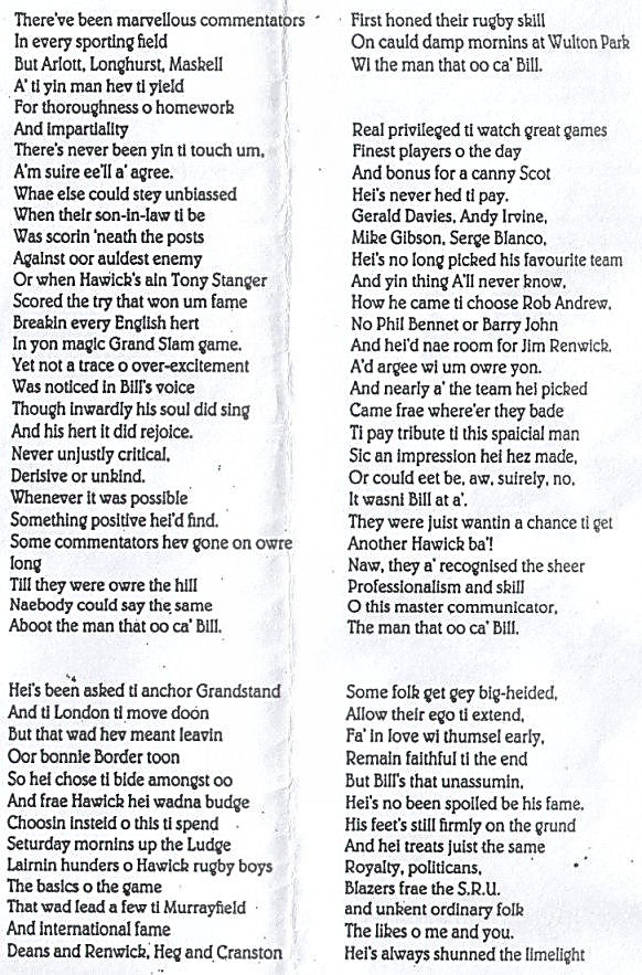 His favourite rugby moment was Scotland’s 1976 triumph over England in which his son-in-law, Alan Lawson, scored twice. He later admitted he almost fell out of the commentary box on that occasion.