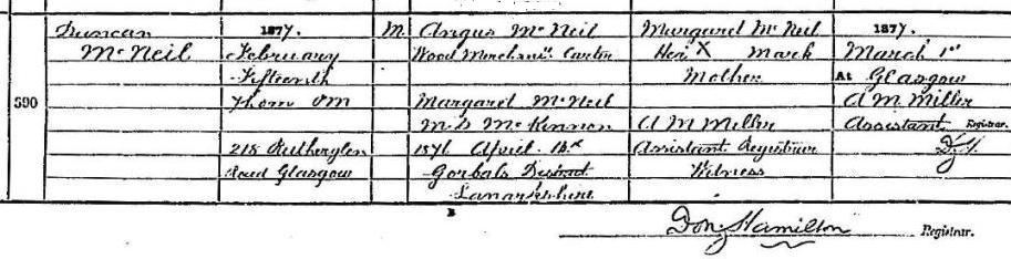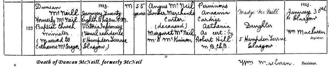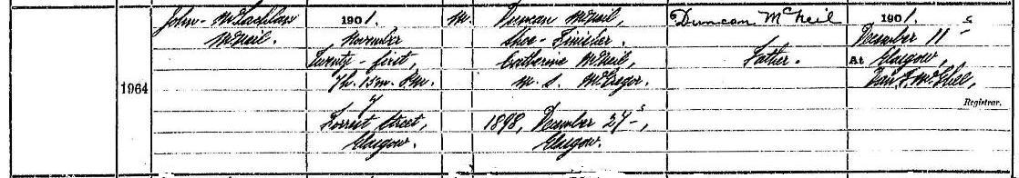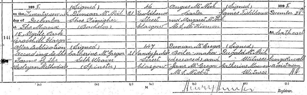 Duncan McNeil, by then a Shoe Finisher to trade, married Catherine McGregor