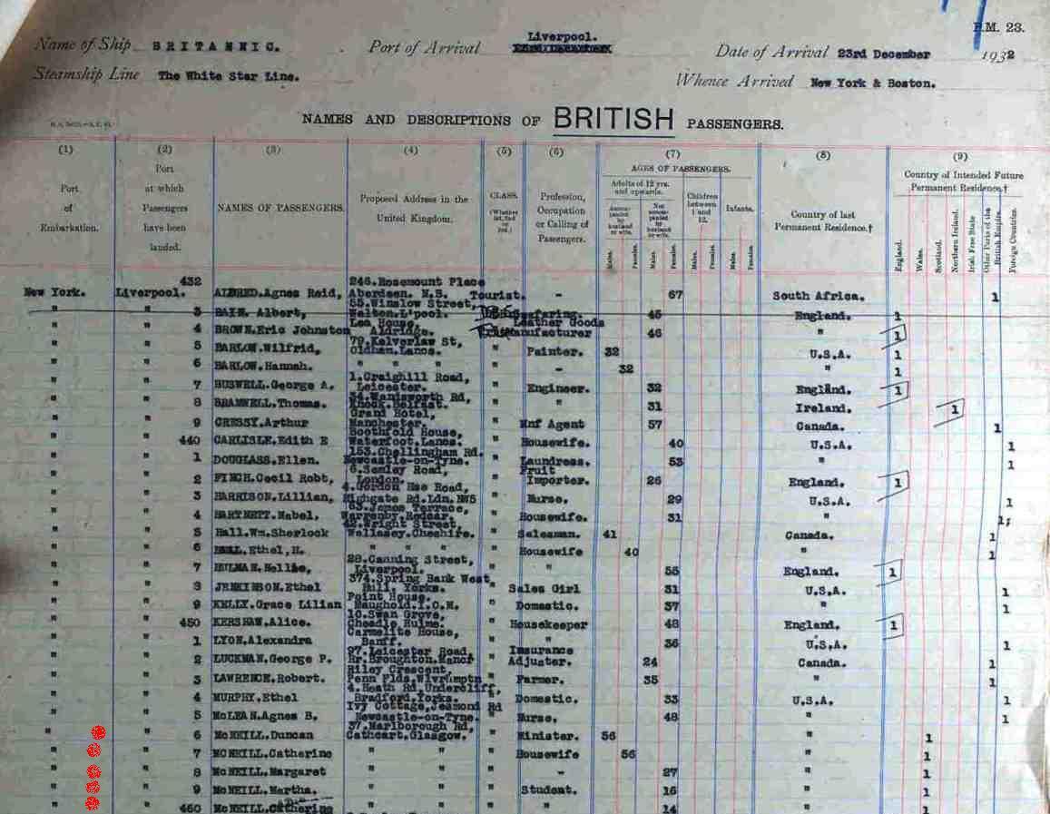 Liverpool, England from New York and Boston aboard the SS Britannic on 23rd
