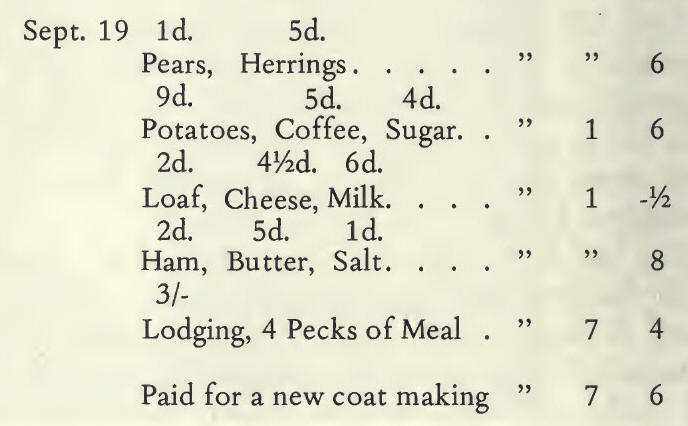 There is a most revealing little account book, meticulously kept in a fine copperplate hand from the moment he started work there in March, 1828. It recounts that he paid three shillings a fortnight for his lodgings and bought all his own provisions. A typical entry reads,