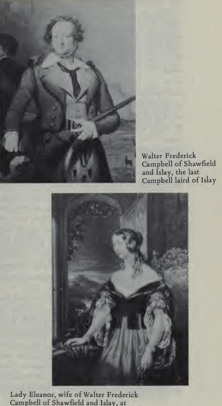 Some help was forthcoming but it was not sufficient, and the high road, running at the foot of the hills across a great stretch of moorland between Bridgend and Port Ellen, remained unfinished for many years. The laird did succeed in obtaining a grant from the Enclosures Conunissioners of £30,000, to be expended on land drainage within a period of three years. Another necessary public work was the enlargement of quays built for sailing vessels in order that steamers could be accommodated, and Walter Frederick Campbell succeeded, also, in securing an Act of Parliament for the erection of new harbour facilities at Port Ellen. Just then, the failure of an Islay merchant whose bills he had backed put the Campbell finances into such bad condition that the Estate was sequestered, or removed from Mr. Campbell's possession, until the demands of his creditors could be satisfied. The Trustees' accounts show that the arrears of rent, carried on for many years, stood on December 2, 1847, at