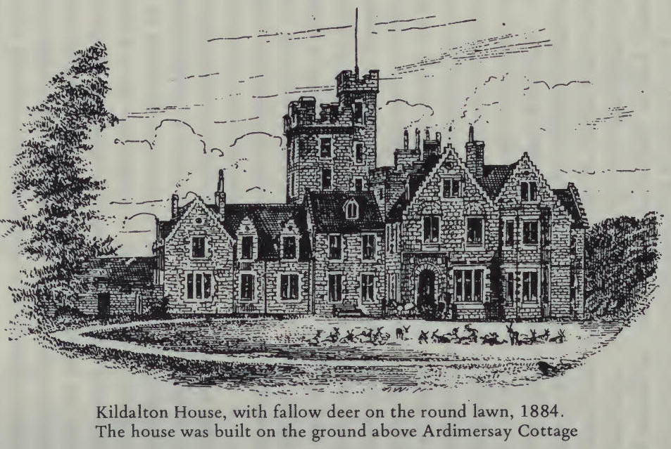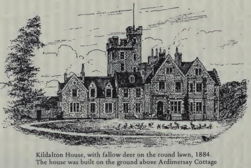Ardimersay Cottage proved difficult to keep weatherproof, although John replaced the thatch with slates. He, therefore, built the present Kildalton House in 1870, to which he brought his second wife, Lucy, daughter of George Martin of Auchendennan (now the Loch Lomond Youth Hostel). Although very much younger than he, she supported him in all his public activities and was the mother of his three children.