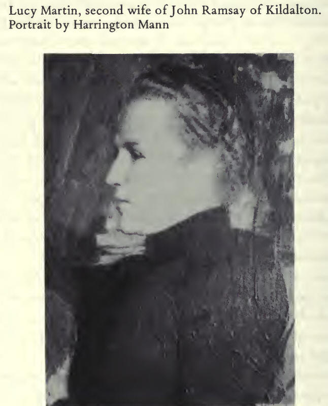 Both husband and wife had been greatly interested in the preservation of the antiquities of the island and, among other activities, had reset the magnificent Cross of Kildalton, which was standing at a perilous angle. The operation was supervised by Sir Arthur Mitchell, President, Dr. Joseph Anderson, Secretary of the Scottish Society of Antiquaries, and the staff of the Museum of Antiquities in Edinburgh. Later, Lucy encouraged R.C. Graham to produce his beautifully illustrated book The Carved Stones of Islay.