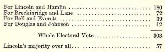 ELECTORAL VOTE, PRESIDENTAL ELECTION OF 1860.
