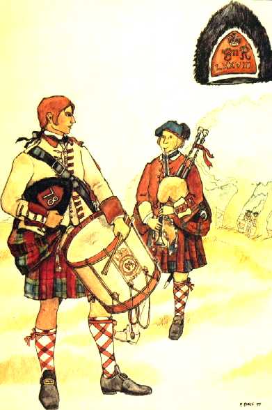 An artist's reconstruction of the uniforms of the 78th Regt of Foot,