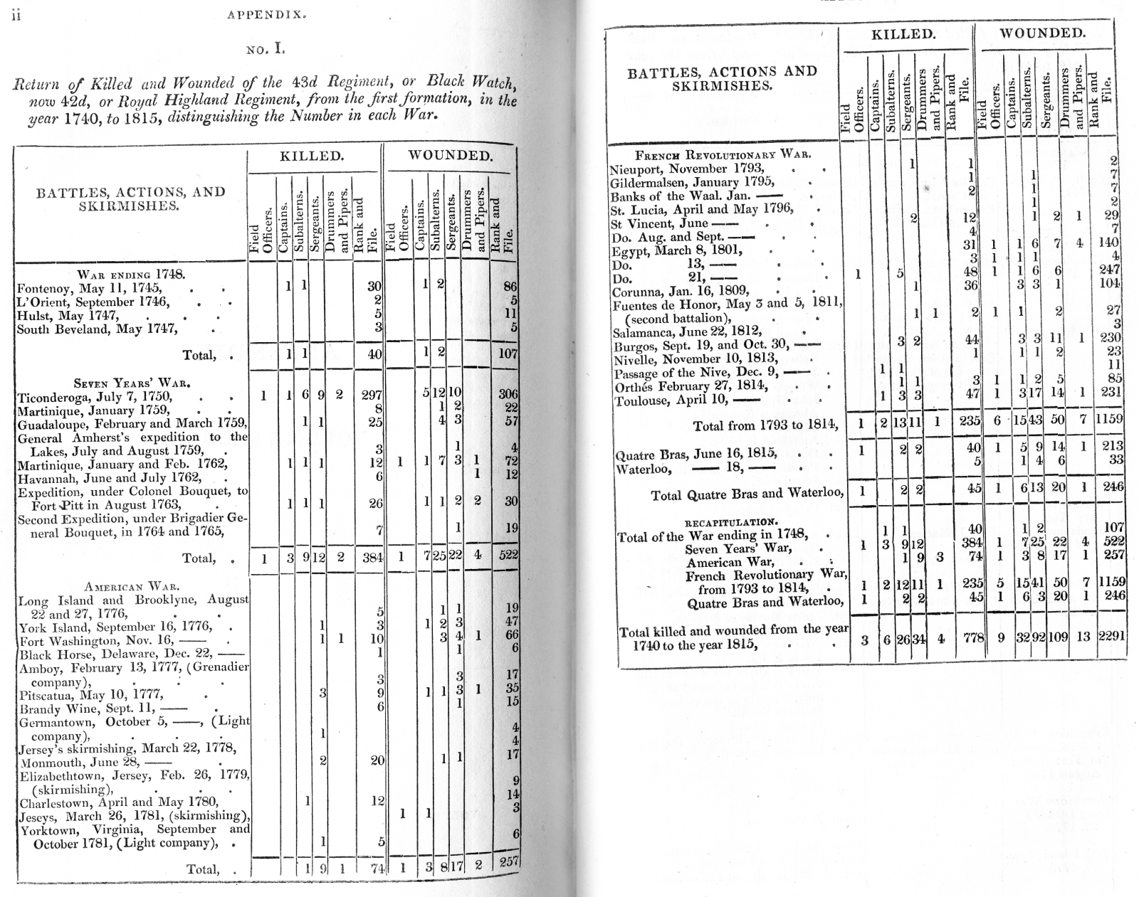 Return of Killed and Wounded of the 43d Regiment, or Black Watch