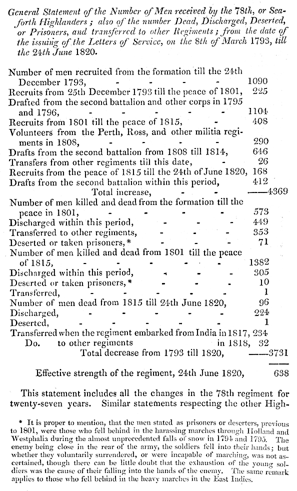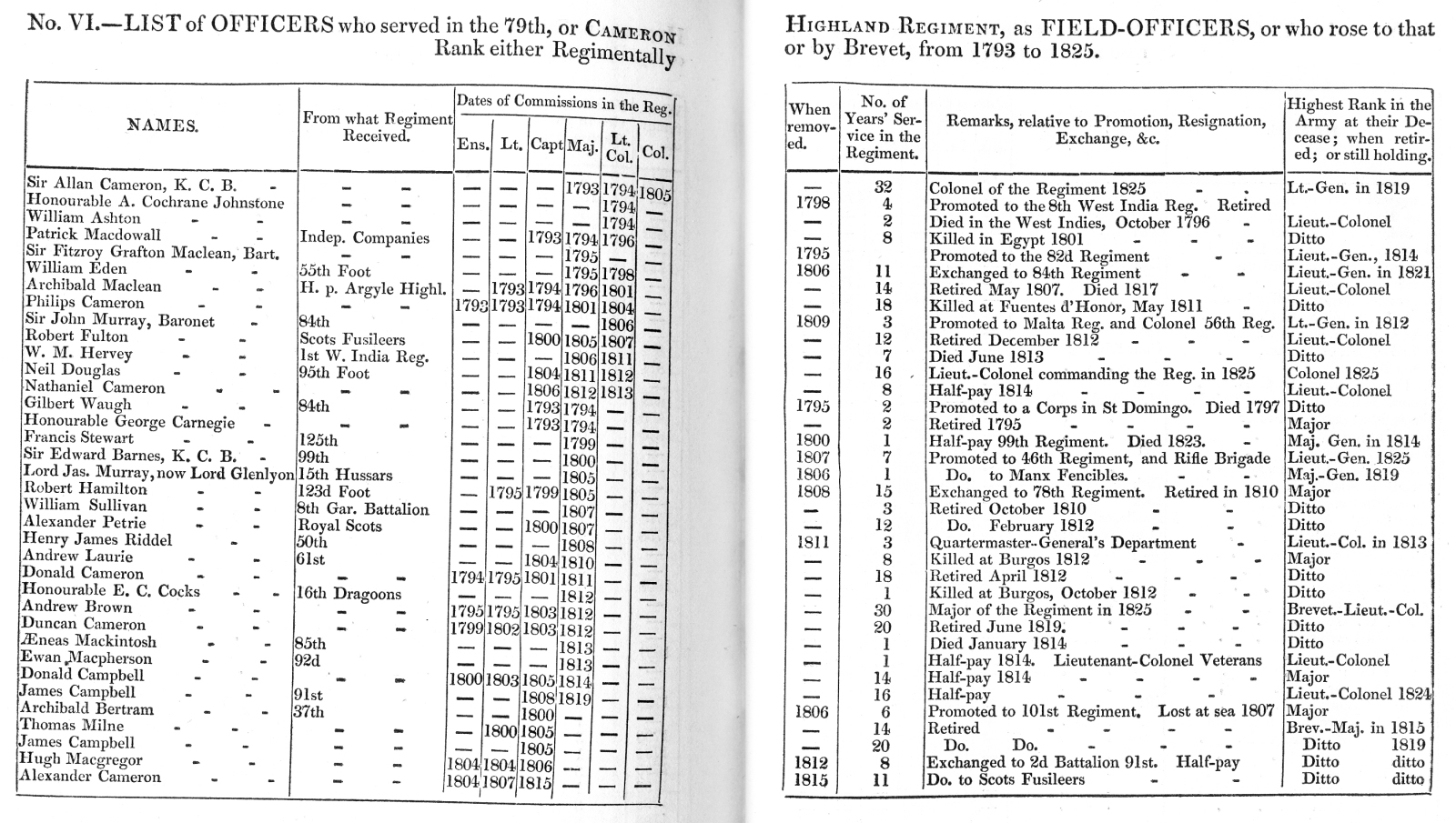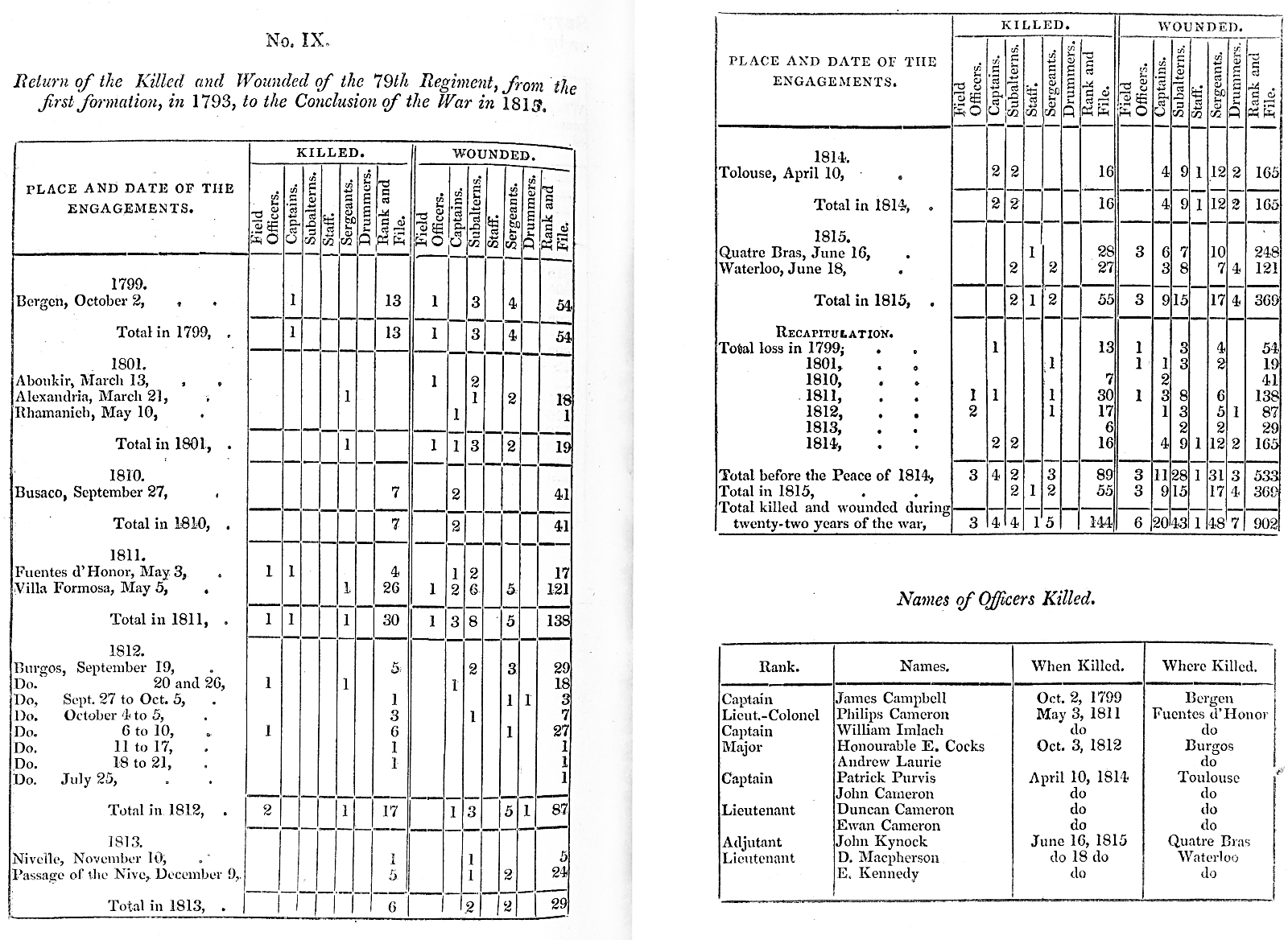 Return of the Killed and Wounded of the 79th Regiment, from the first formation, in 1793, to the Conclusion of the War in 1815.