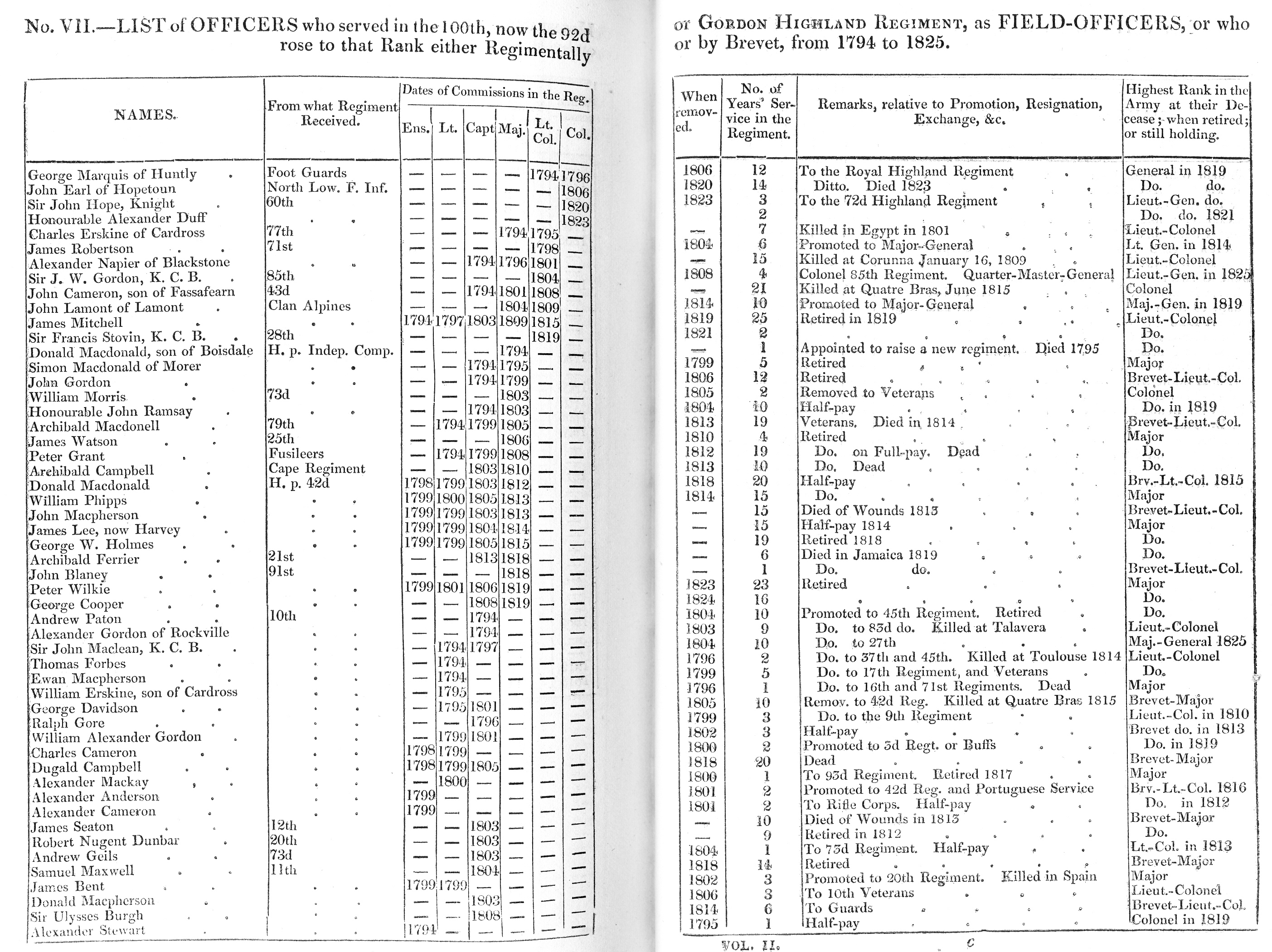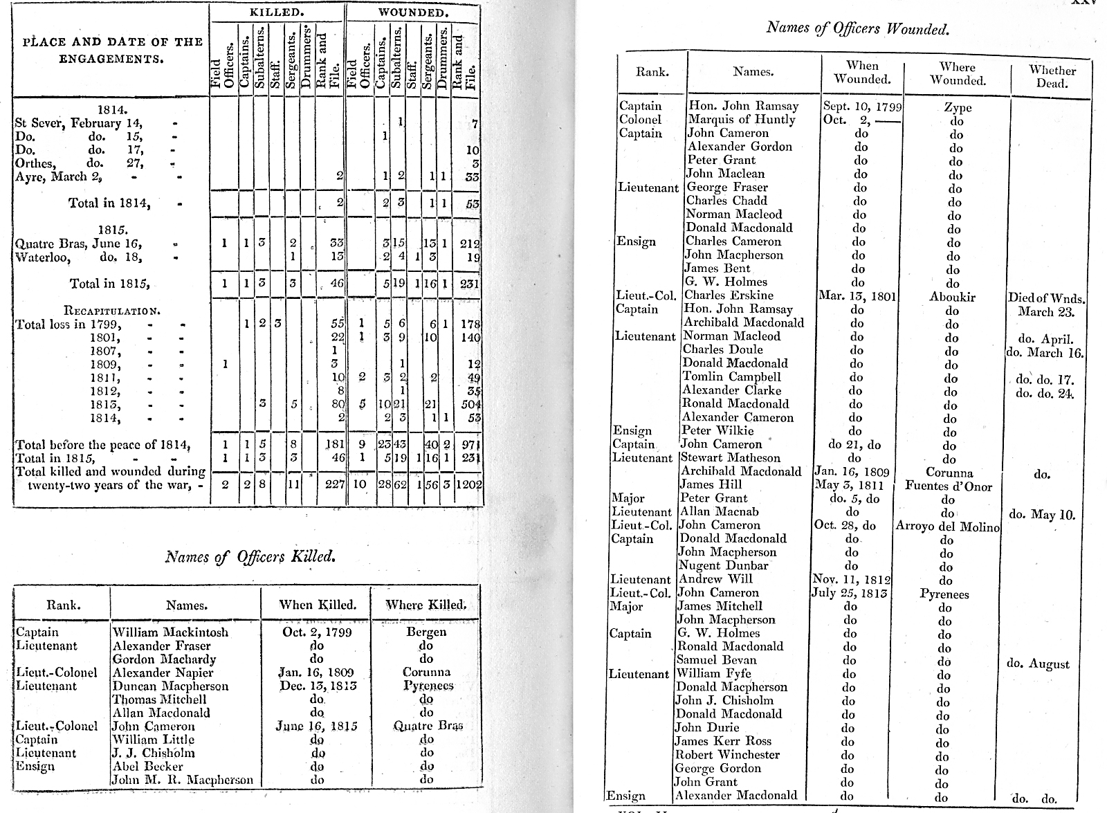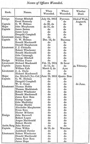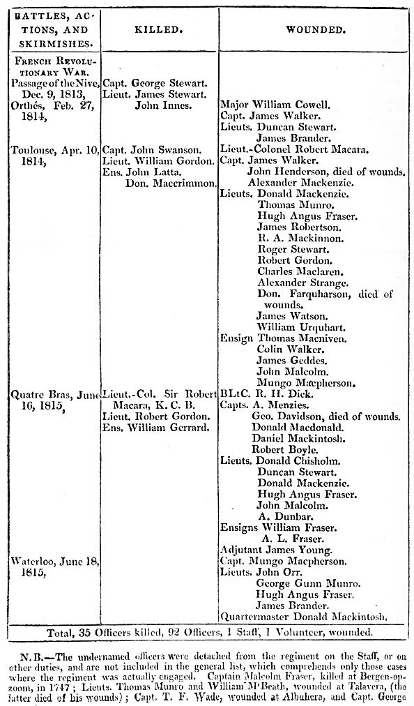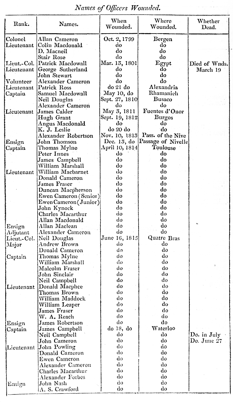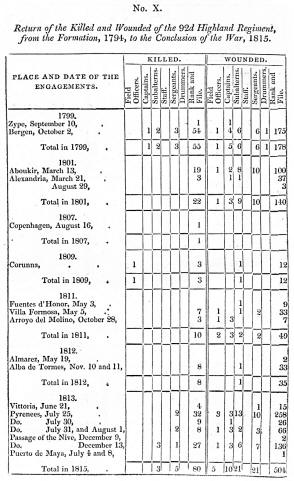Return of the Killed and Wounded of the 92d Highland Regiment, from the formation, 1794, to the Conclusion of the War in 1815.