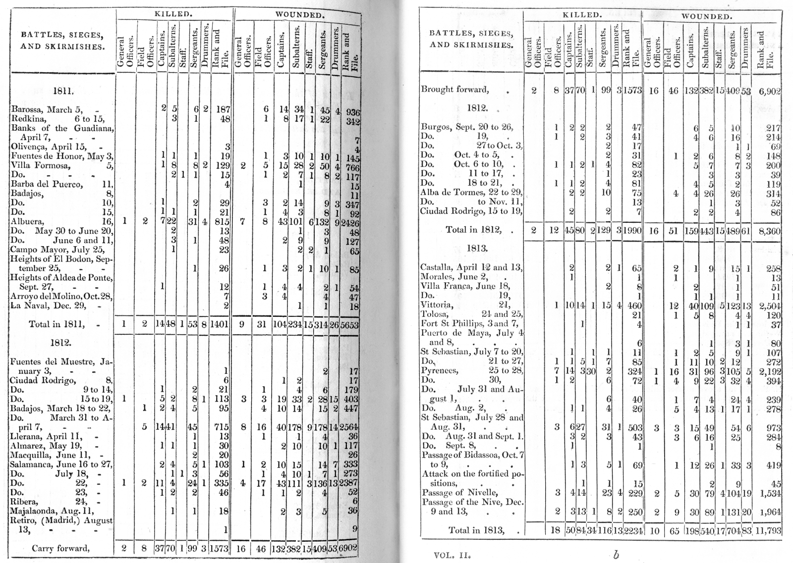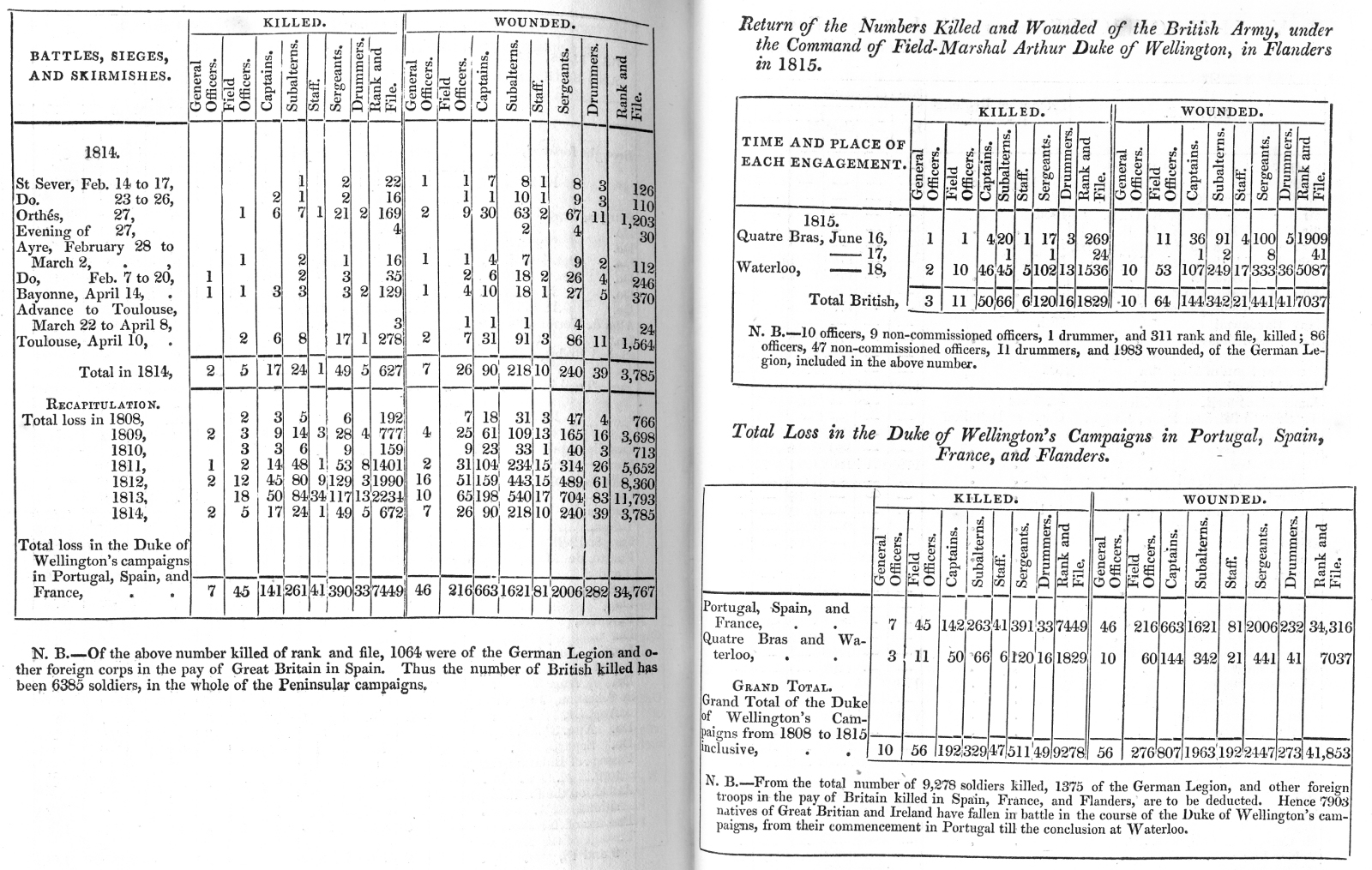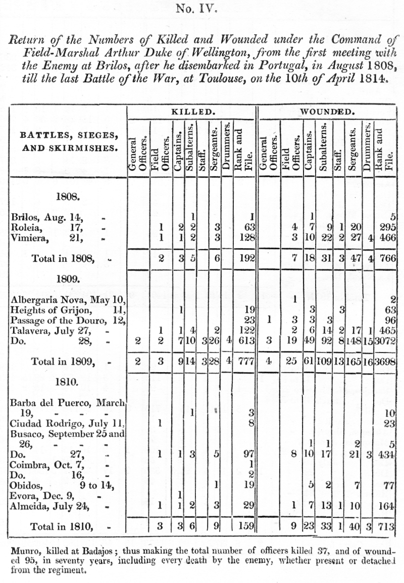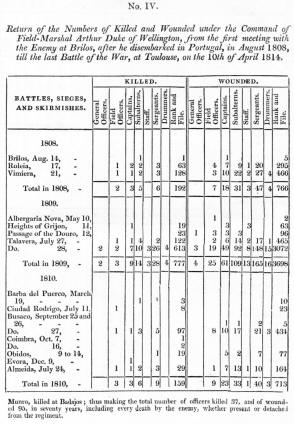 Return of the Numbers of Killed and Wounded under the Command of Field-Marshall Arthur Duke of Wellington, from the first meeting with the Enemy of Brilos, after he disembarked in Portugal, in August 1808, till the last Batle of the War, at Toulouse, on the 10th of April 1814.