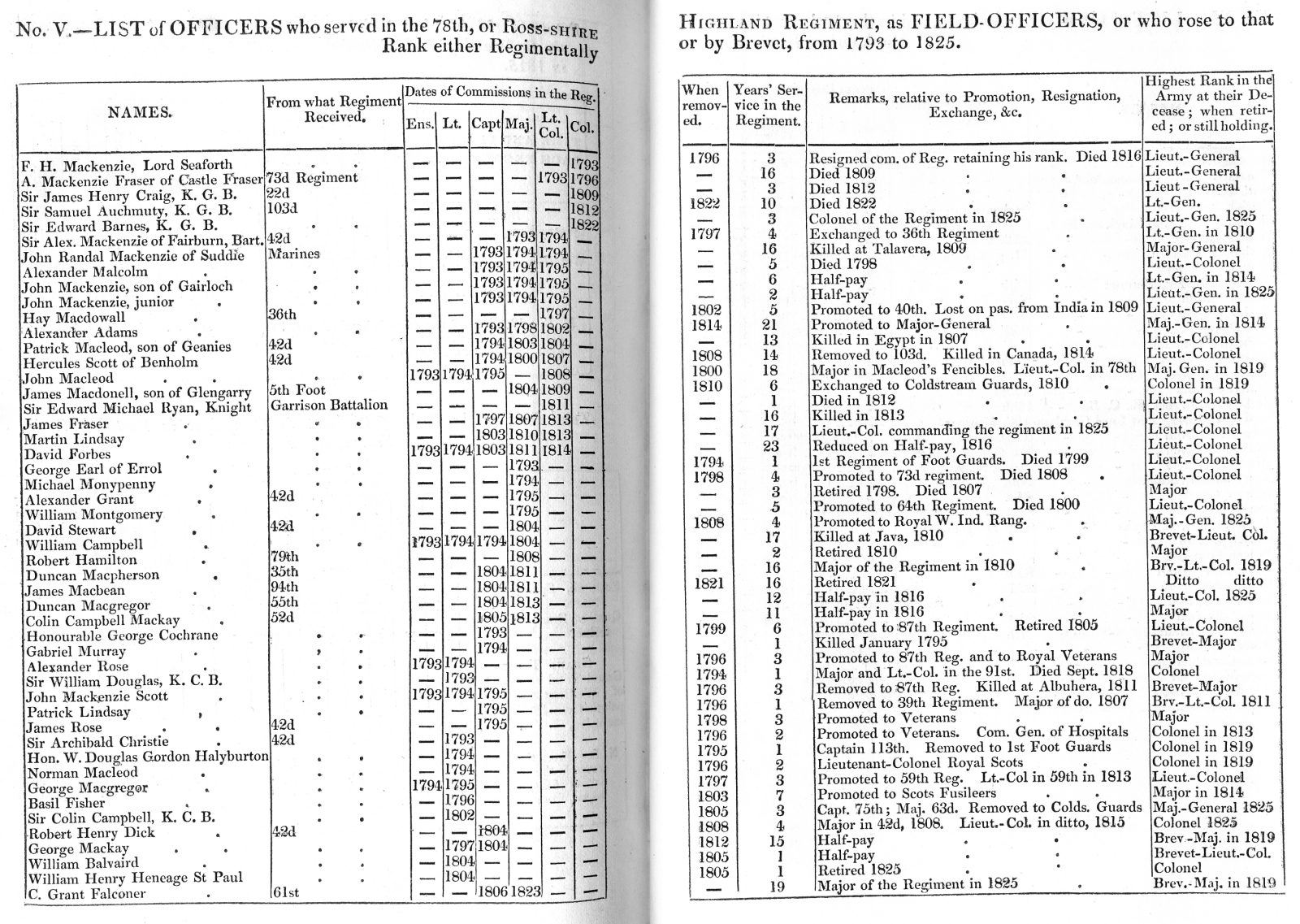 List of Officers who served in the 78th, or Ross-Shire