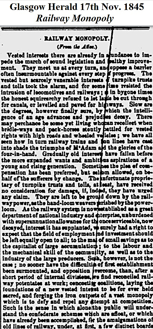 1845, Nov 17 Railway Monopoly