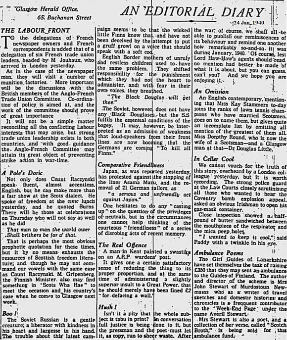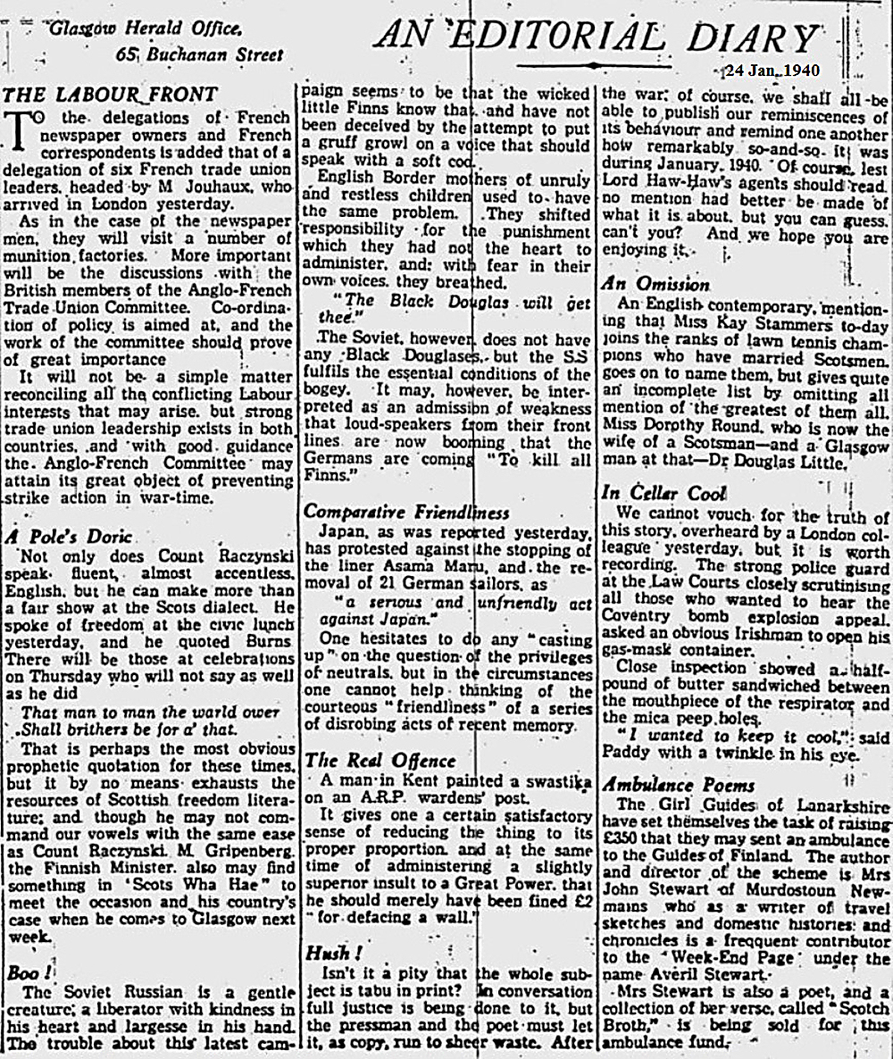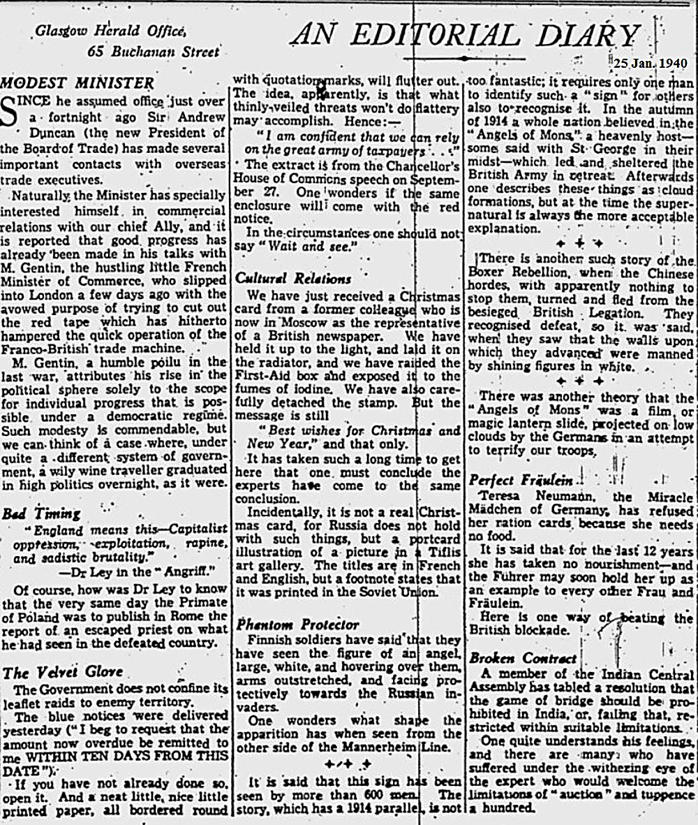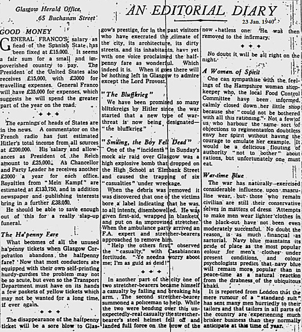 1940, Jan Editorial Diary during WW2 - 23rd to 27th January 1940