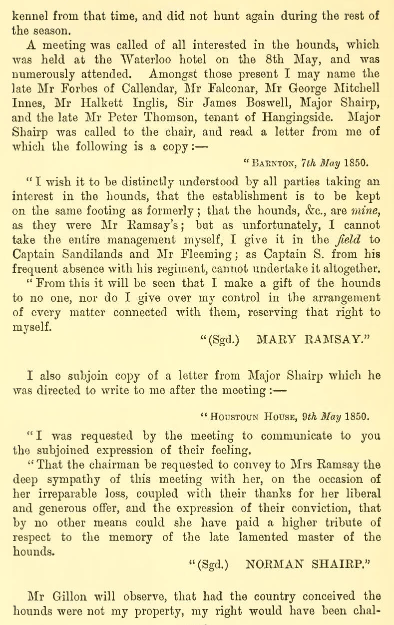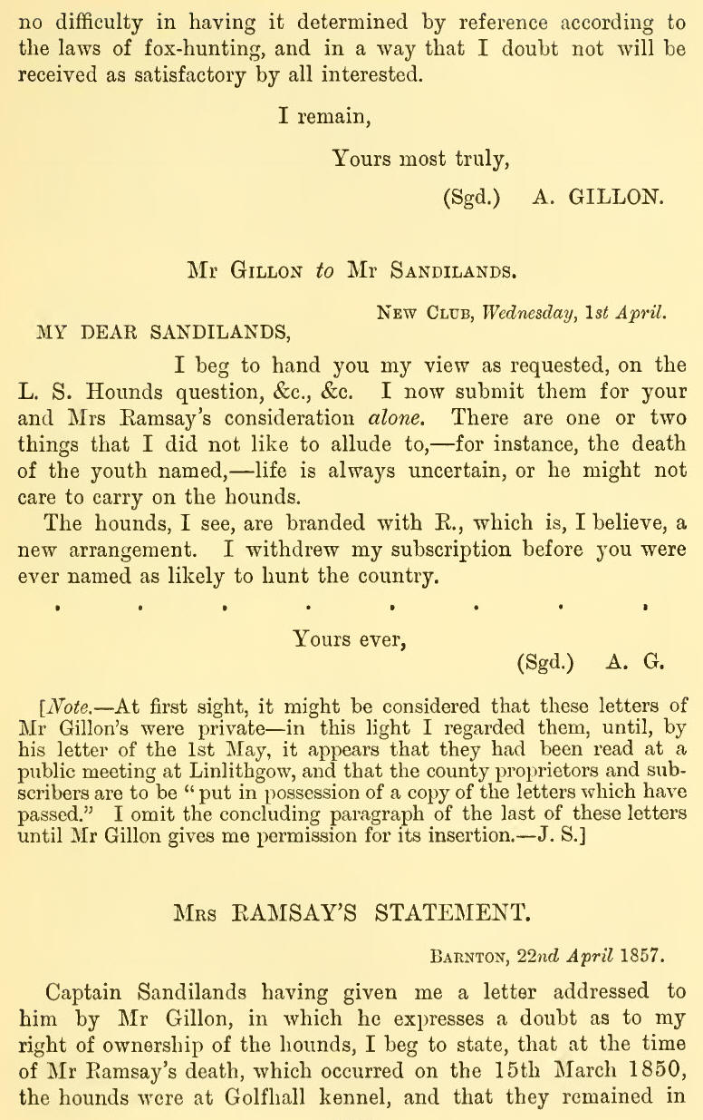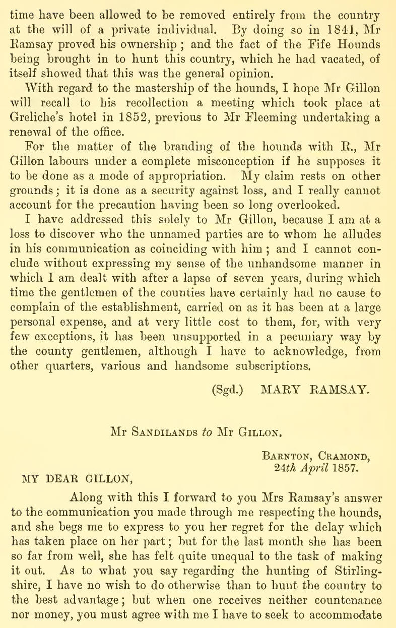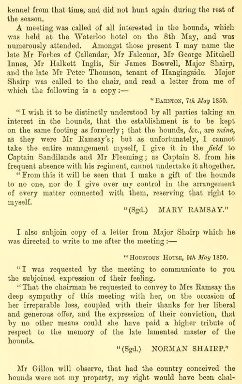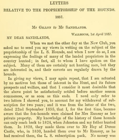 Appendix III - Letters relative to the Proprietorship of the Hounds, 1857