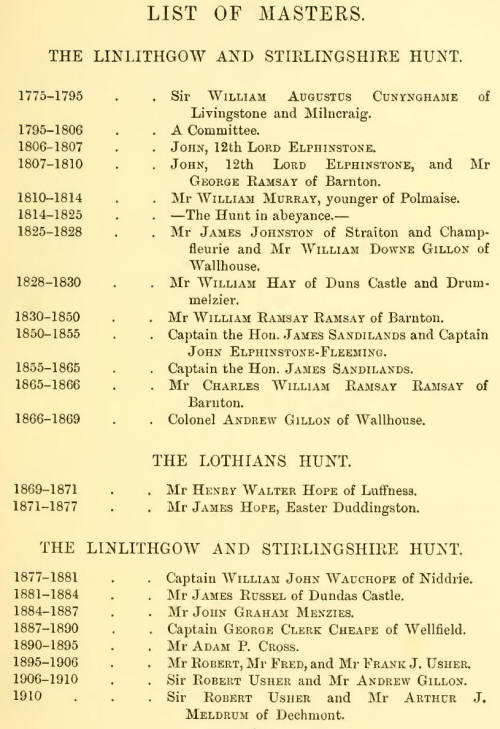 now hunt or have hunted with the Linlithgow and Stirlingshire Hounds, I