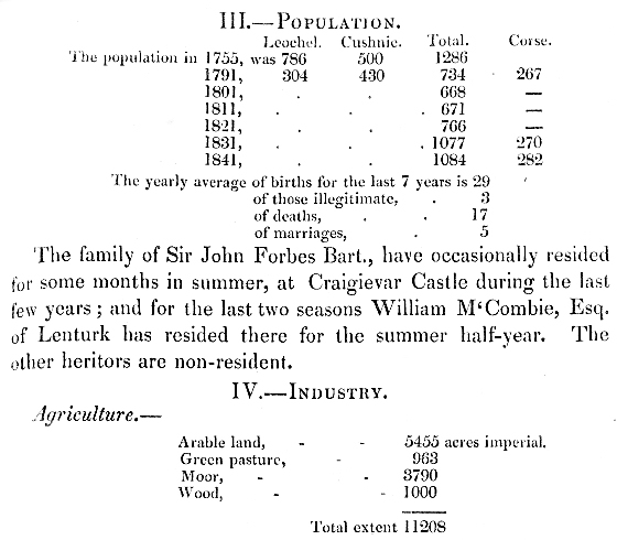 Leochel. In 1812, Sir Charles Forbes, Bart. gave L.l00 to the poor of