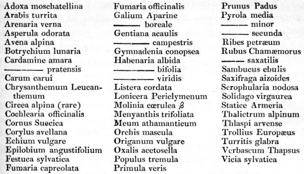 Botany.—This parish is not deficient in variety of vegetable productions. The following will be found a pretty correct list of the less common plants. The locality of a few of the Alpine plants mentioned is, however, immediately beyond the western boundary of the parish, but the close connection with the botany of the head of Aberdeenshire will be an apology for noticing them here.