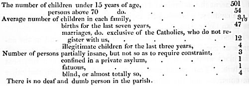 Eminent Men.—There is no person of particular eminence, either in literature or science, with whom this parish can claim connection by birth or residence. There are not wanting, however, characters of distinguished moral excellence, some of which merit especial notice in the statistics of this parish.