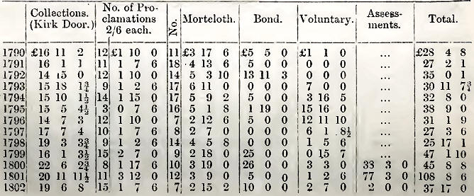 The following Tables will show the money collected for, and expended on the Poor, from 1790 to 1814, the number of the stated Poor, and the amount of sums occasionally given, together with the number of those Marriages and Funerals which have been recorded :—