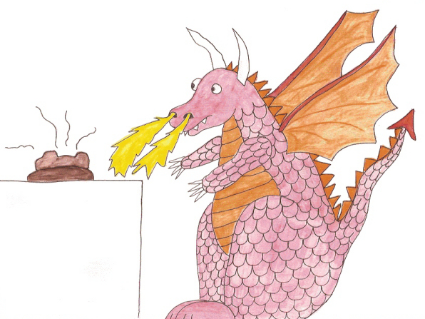 turning his cake into a scorched pile of ashes. Flames stared at the