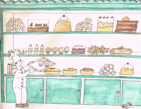 Bakery. Every morning he baked fresh bread, pies, cakes and pastries.
