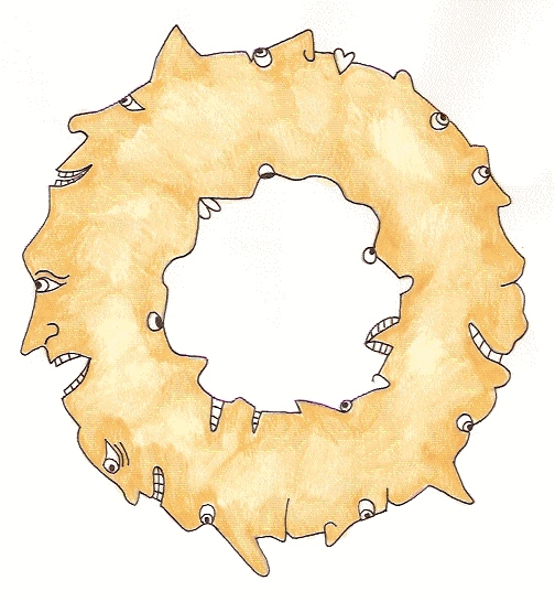 The fairy flew down to them. She laughed and turned the huge donut onto its side. Jan and Mac's eyes and mouths bumped and bashed as the fairy rolled the donut down the street. All day long she taunted them. "You should have given me a bite of your donut. You're very greedy children. Maybe the next time someone asks, you'll share."
