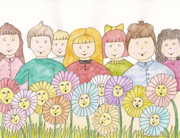helped her mom wash the dishes, she ran out to her flower garden. She