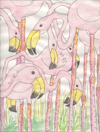 oranges and pinks that reflected off the flock’s coral pink feathers,