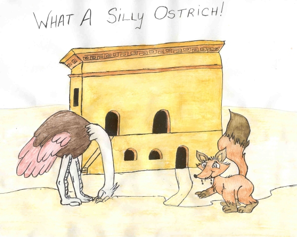 really think he was hiding by putting his head in the sand? What a silly