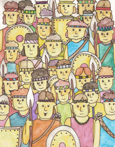 temples. They carried spears and shields and boys and arrows. “Papa, are