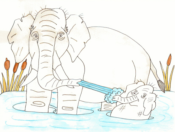 it. “It's raining! It's raining!” He filled his trunk with water and