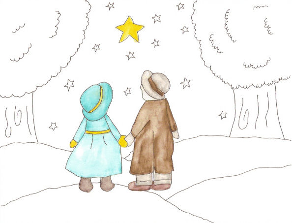his wife's wrinkled hand in his and they gazed up at the star. "I'm going