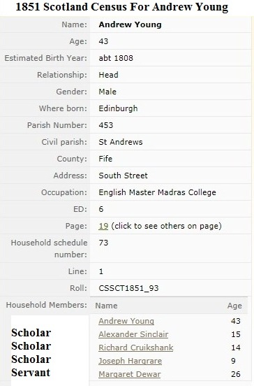 What Andrew had been doing in St Andrews emerges in the 1851 Census ...