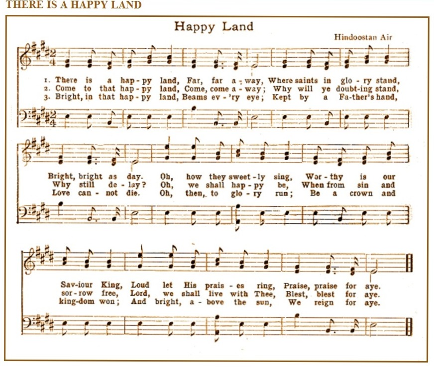 Happy Land" were written by Andrew Young in 1838. They were adapted to a