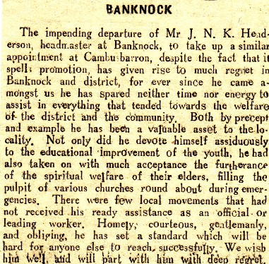 The Dominie departs to acclaim – Kilsyth Chronicle 1949