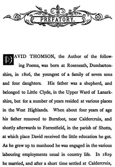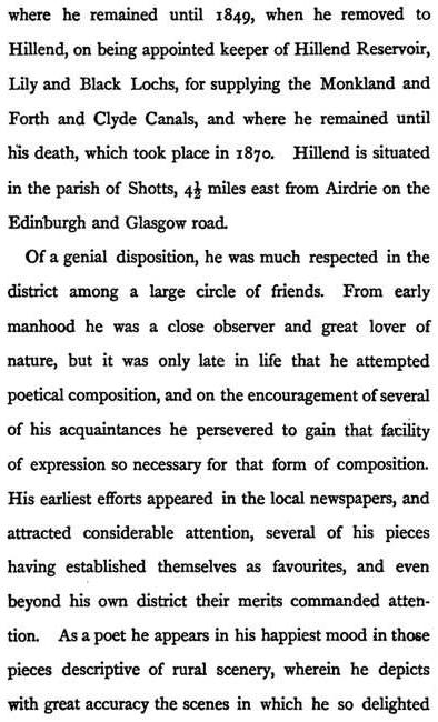 David Thomson (1806-1870), Reservoir Keeper at Hillend, Shotts, who became a poet late in life.