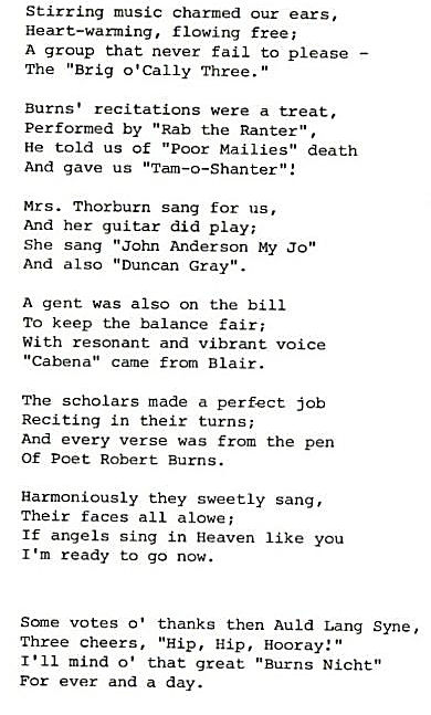 Bridge of Cally Parent-Teacher Association Burns Supper