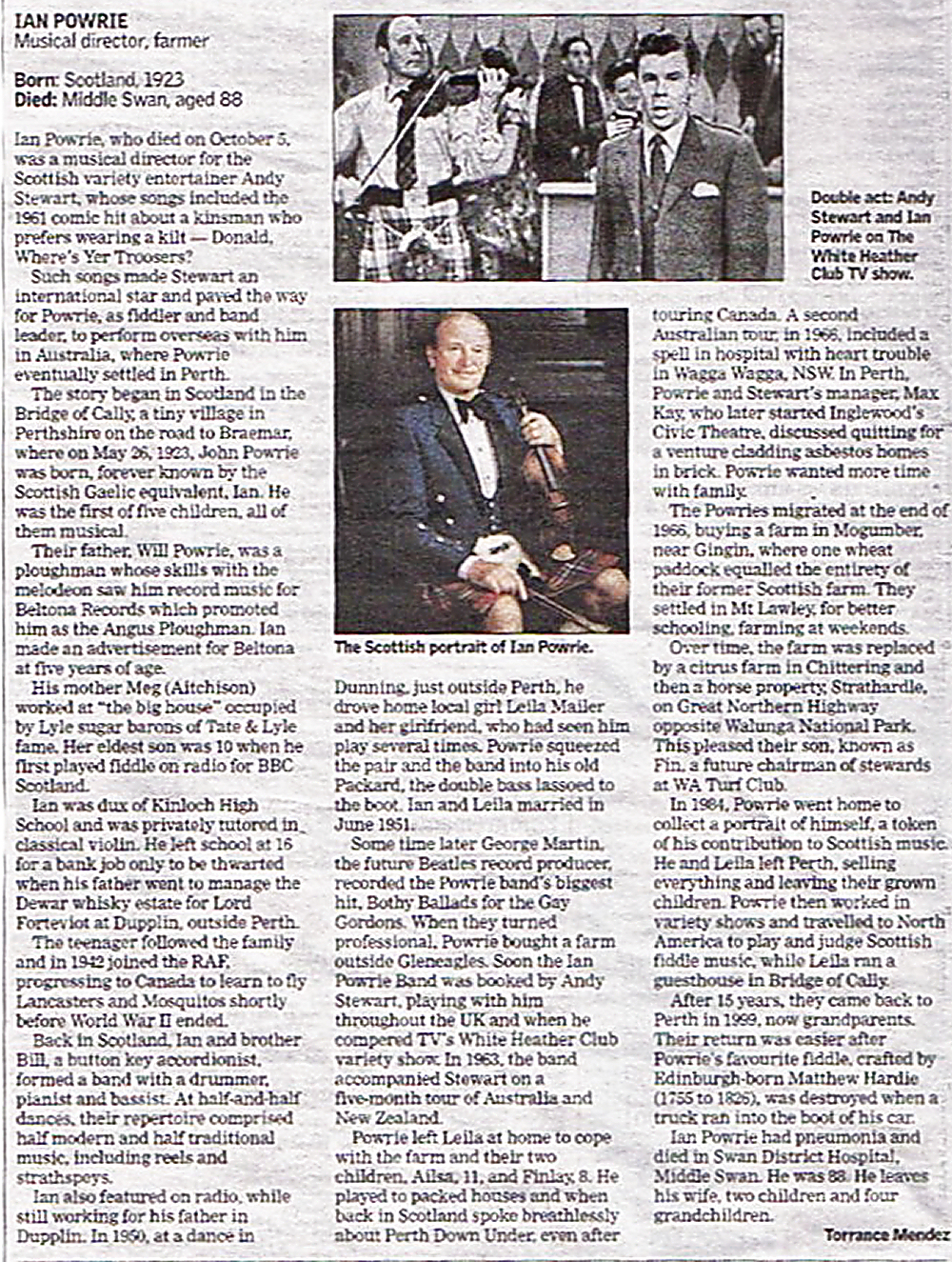 The “Powrie ”name is well known in Scottish music circles- Ian Powrie and