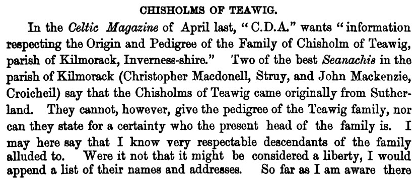 now extinct, was also descended from the border Chisholmes.